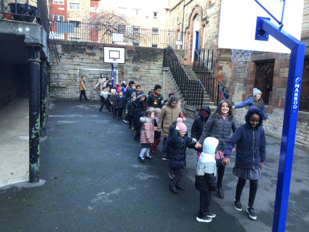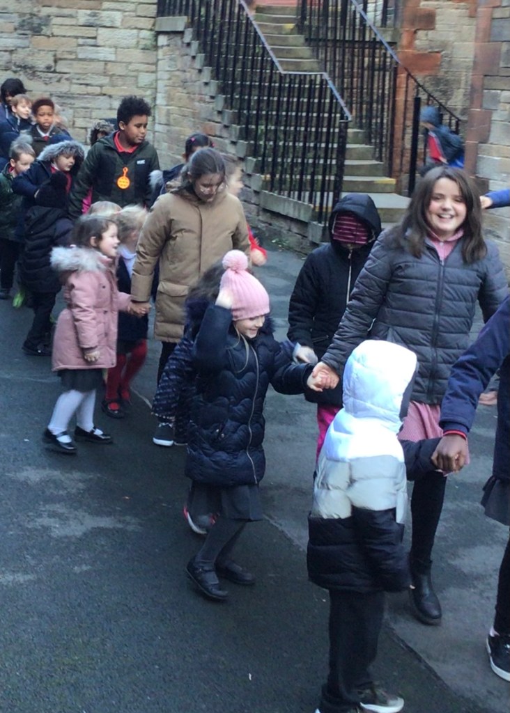 Ceilidh dancing with our P6 buddies