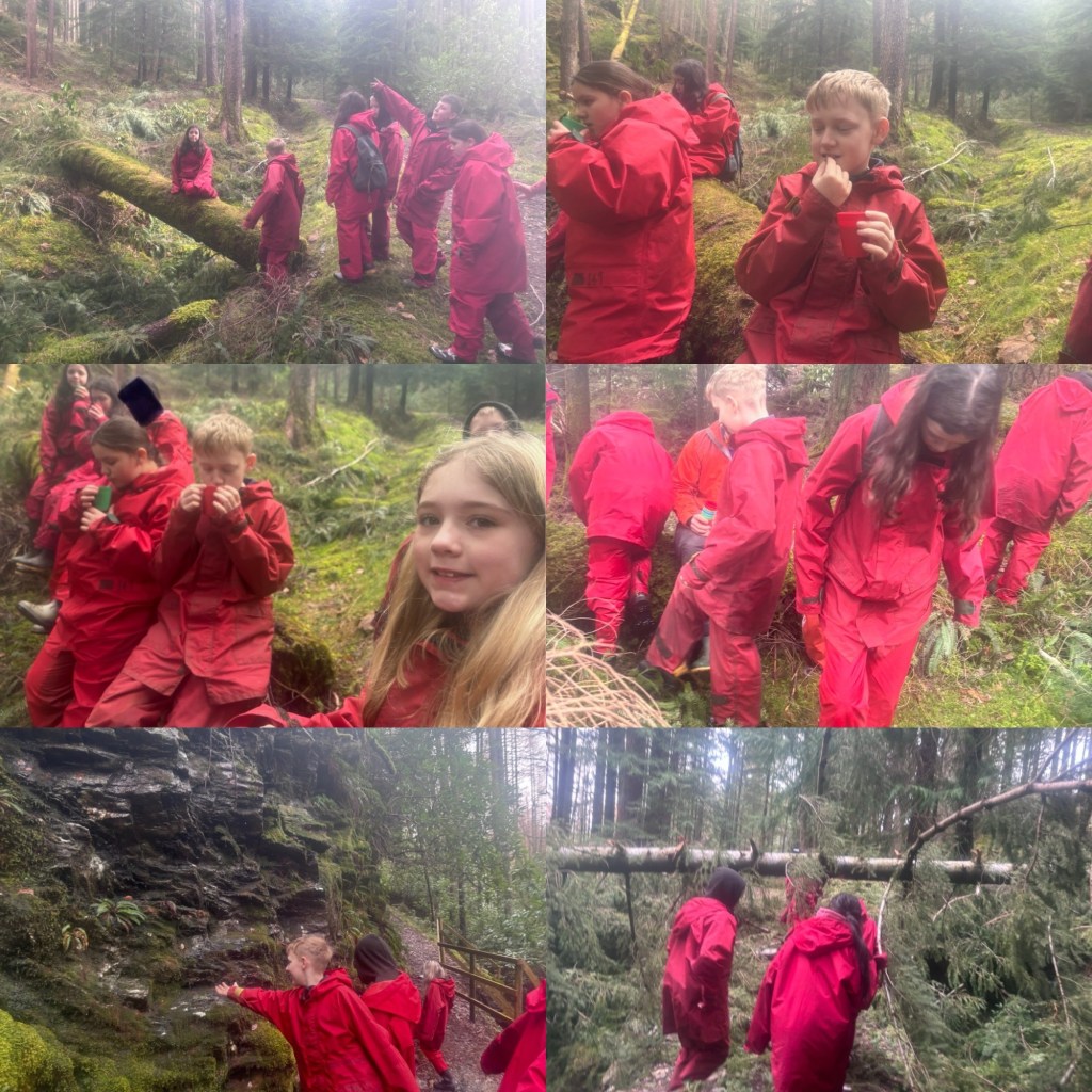 This morning we took a walk in the forest. Each member of the group got a chance to be the leader, responsible for our route and our safety.Yes we all got back safely however it did take us through and up waterfalls, over across and under trees!