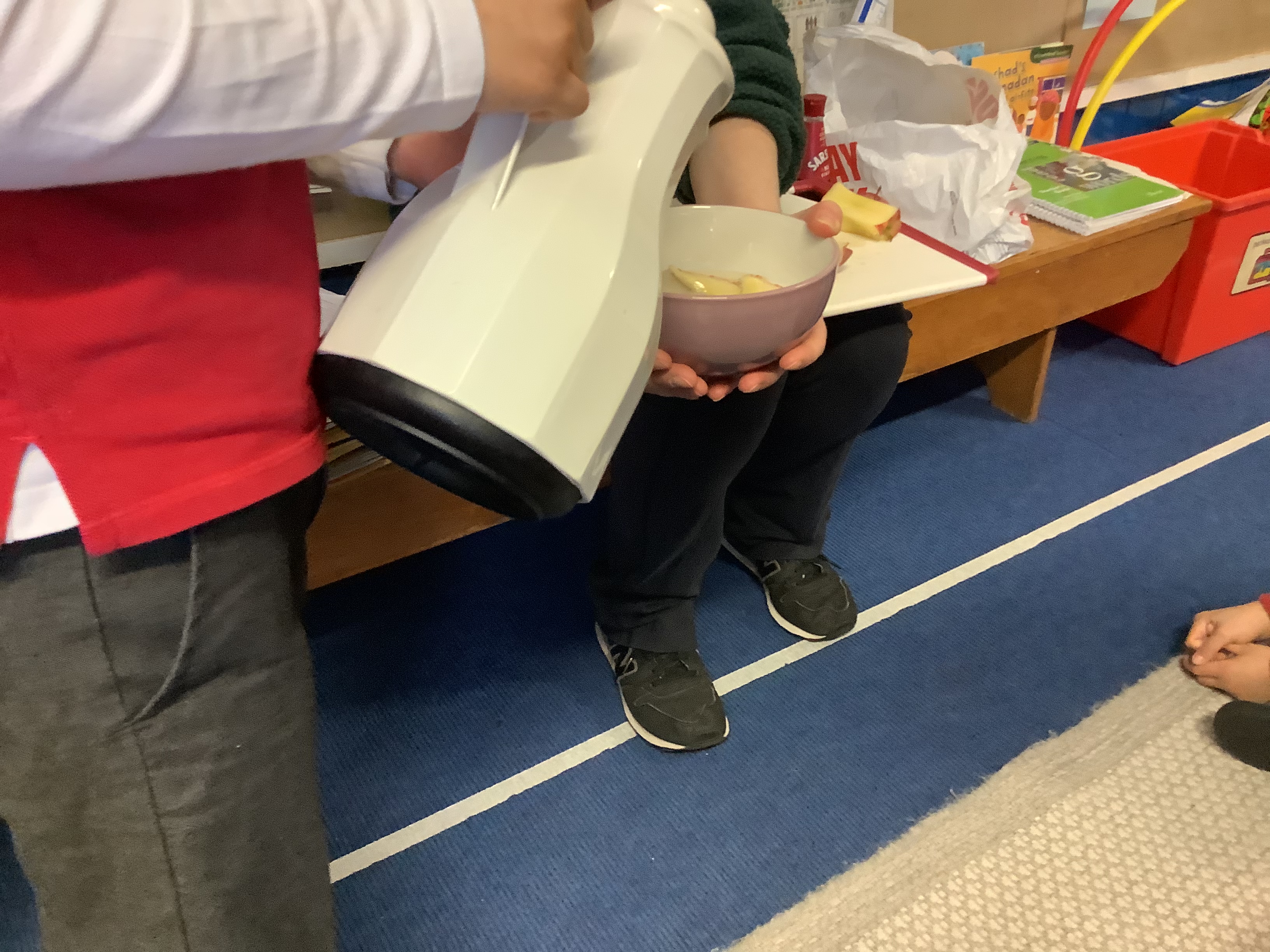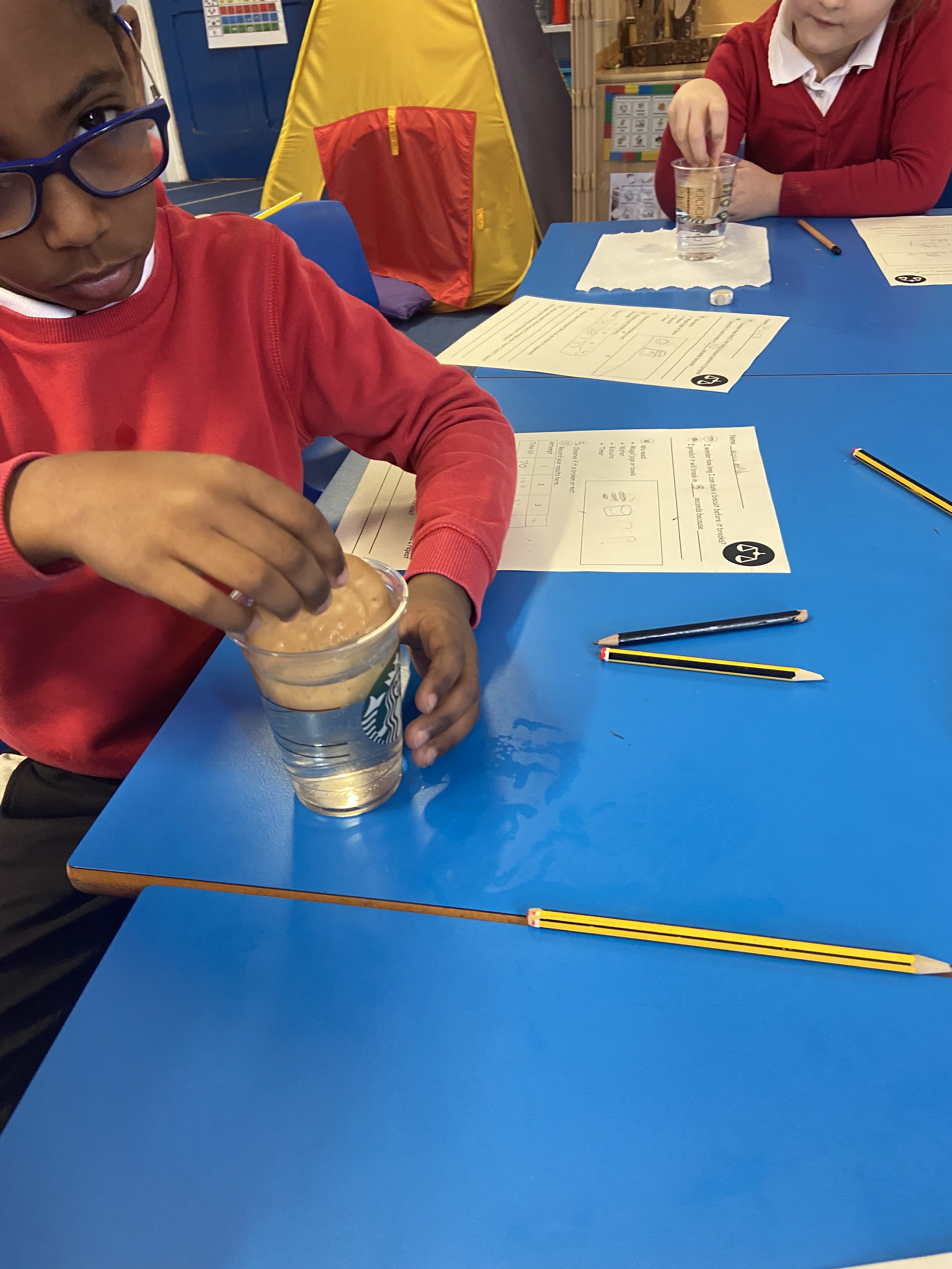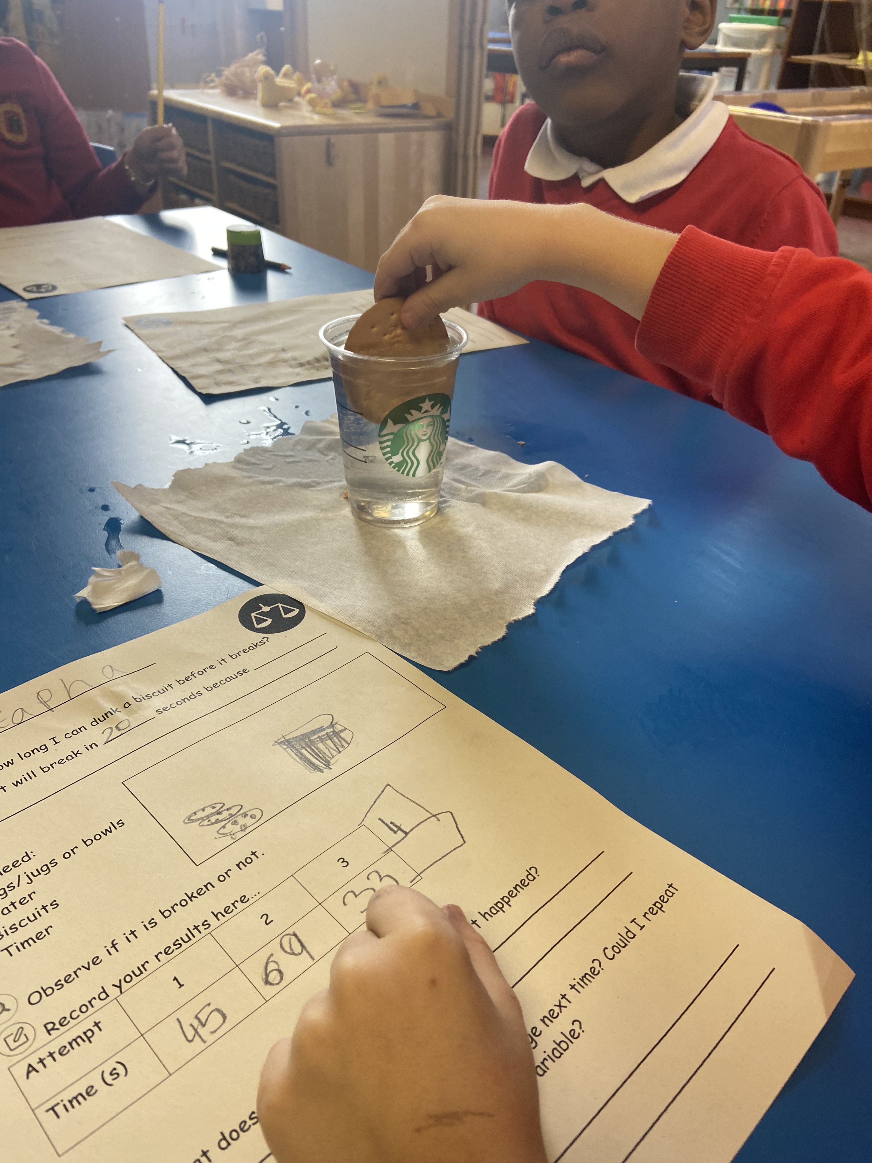 Timing helicopters falling, helping preserve apples last for a long amount of time and timing how long we can dunk biscuits… we had a great time!