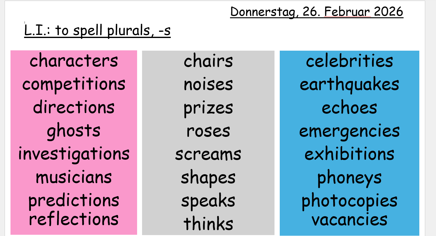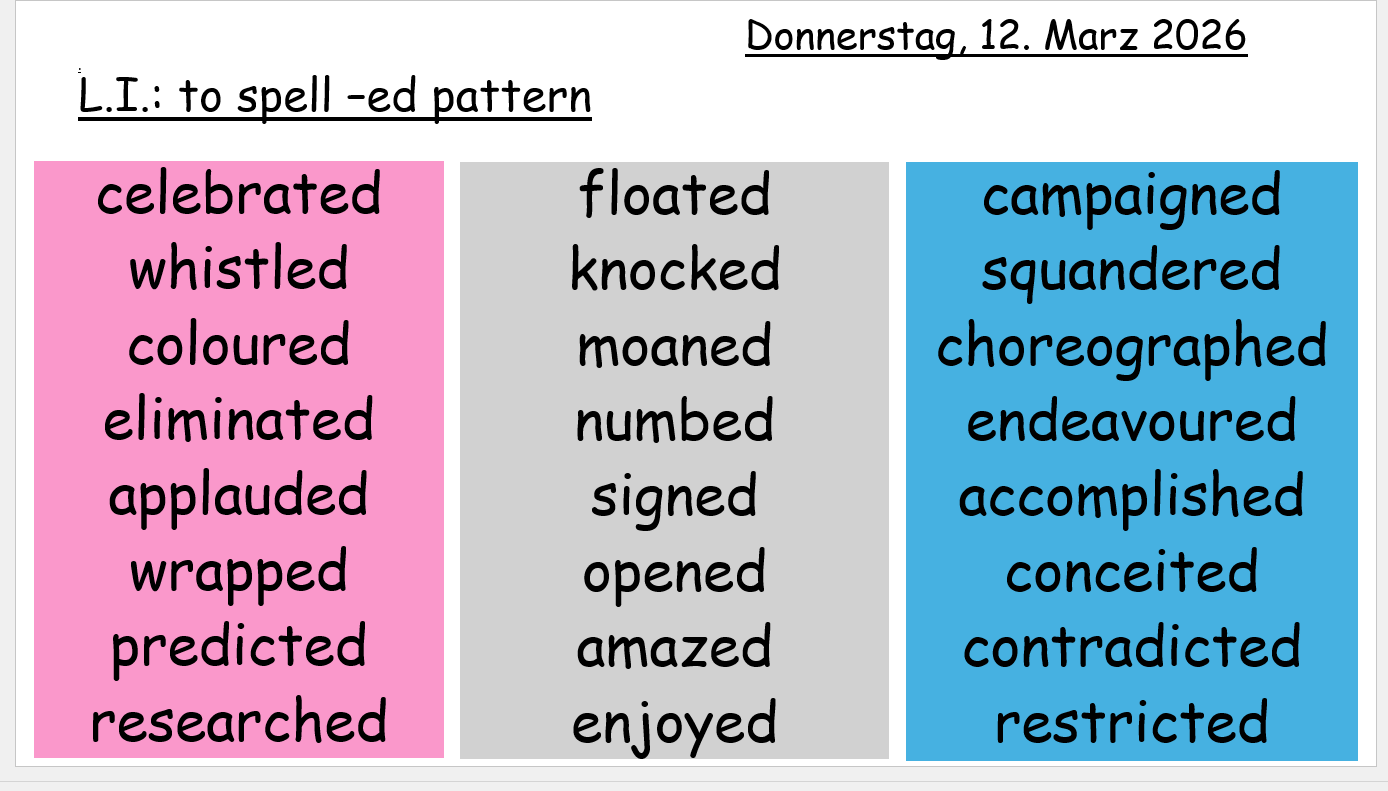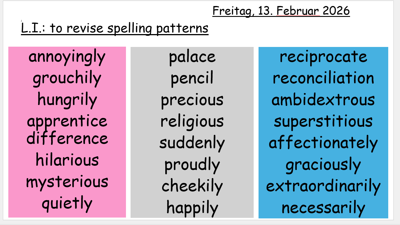 Please practise the words of your group to gain confidence for the weekly spelling test on Fridays: