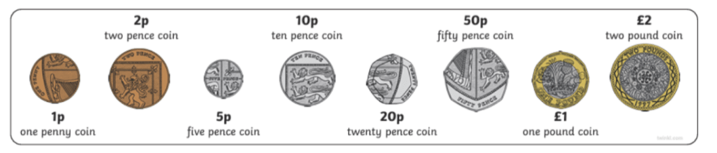 Apply addition and subtraction skills and use 1p, 2p, 5p and 10p coins to pay the exact value for items to 10p.